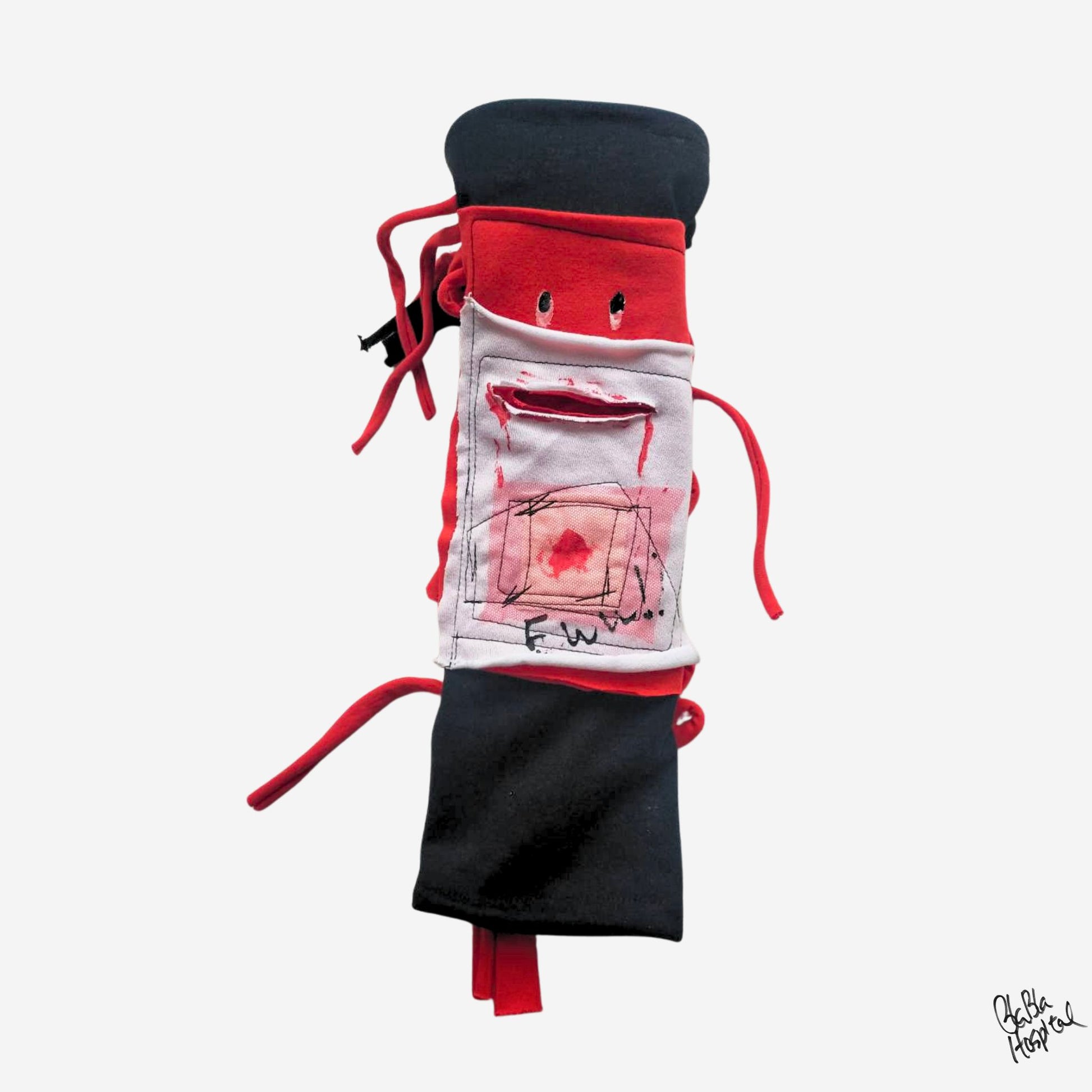 Face No.003 | Fabric Art 赤チェックデザイン – 黒スカーフ