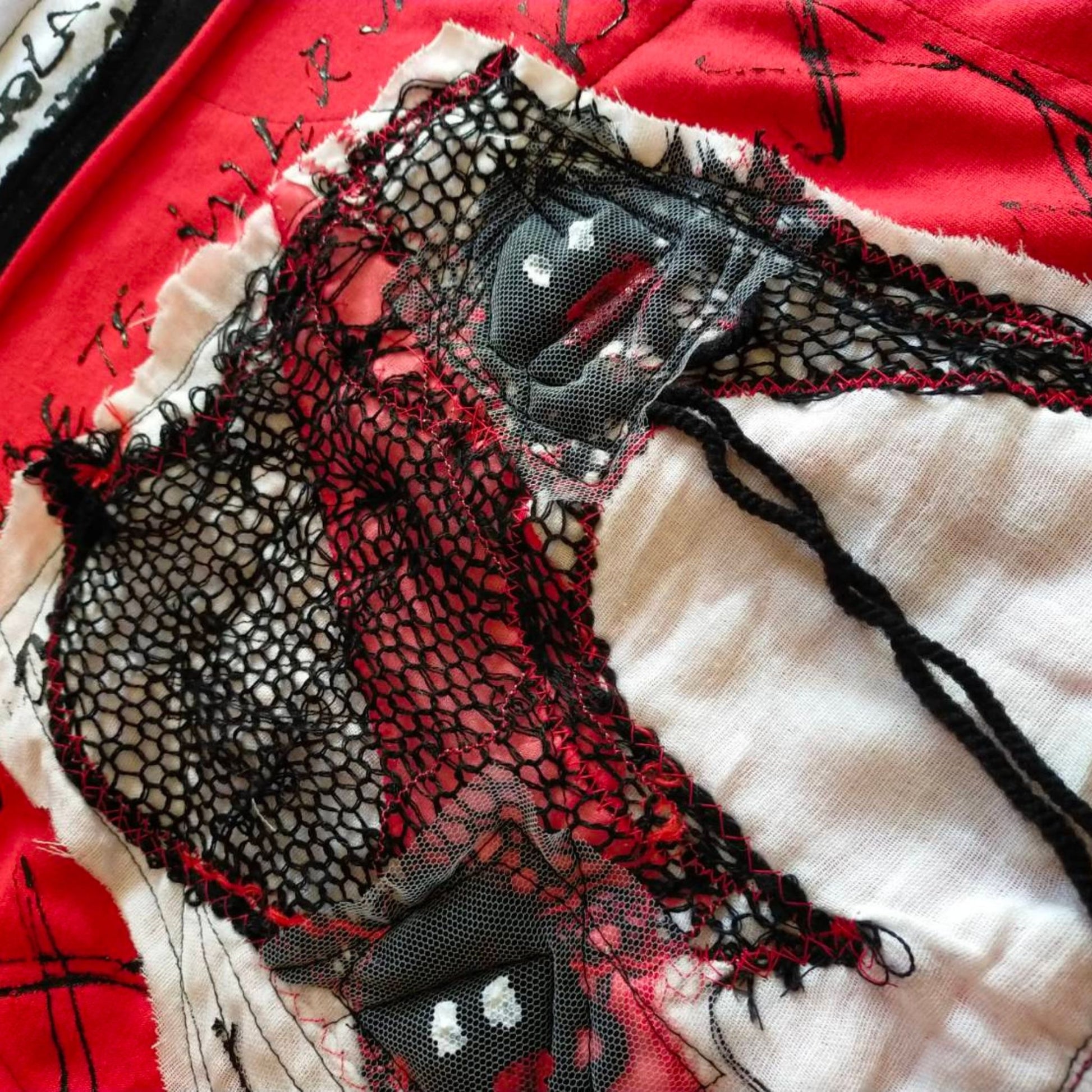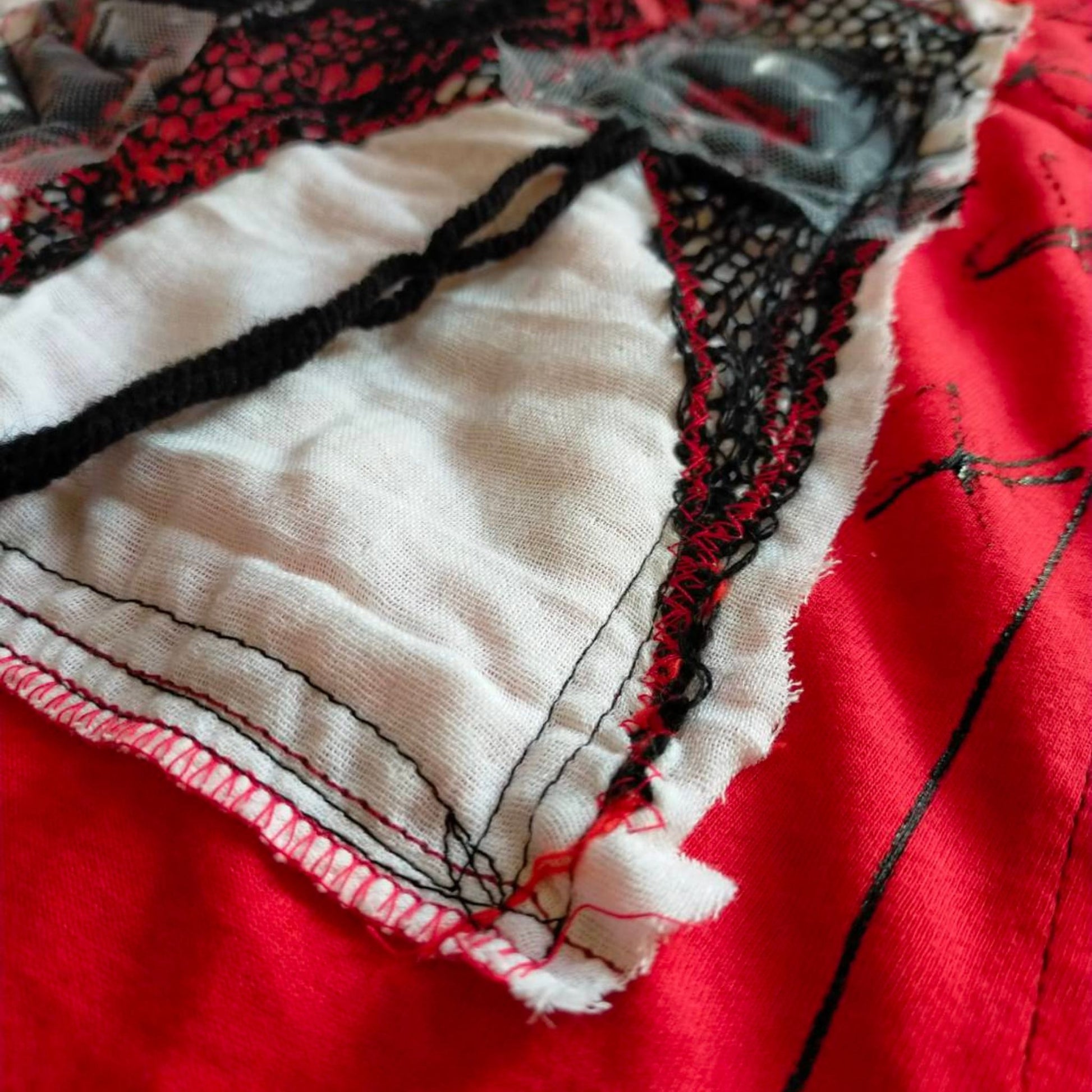 Face No.003 | Fabric Art 赤チェックデザイン – 黒スカーフ