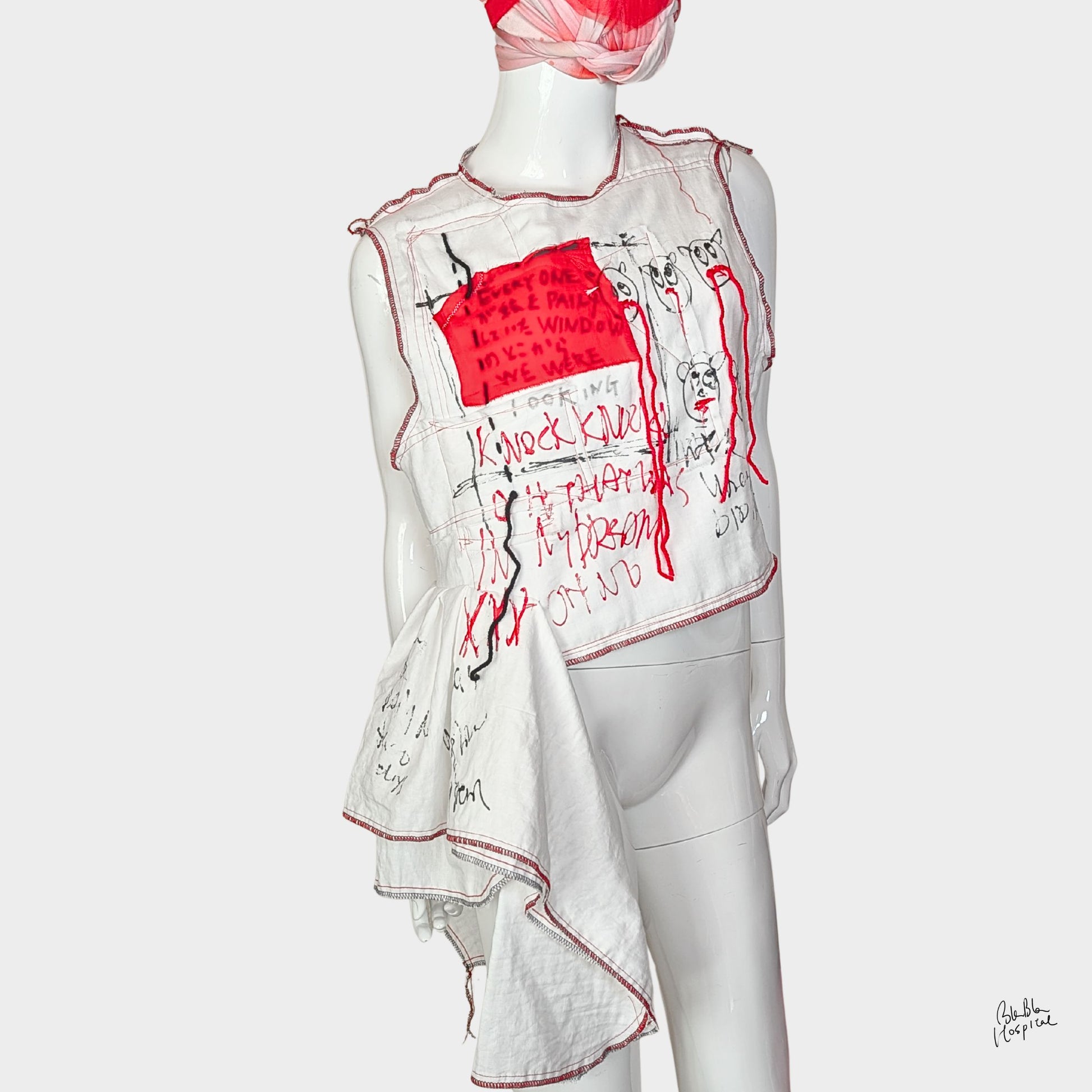 Red Air – No.02 | Sheer Organza Top with Art-Printed Patch – Layering Piece