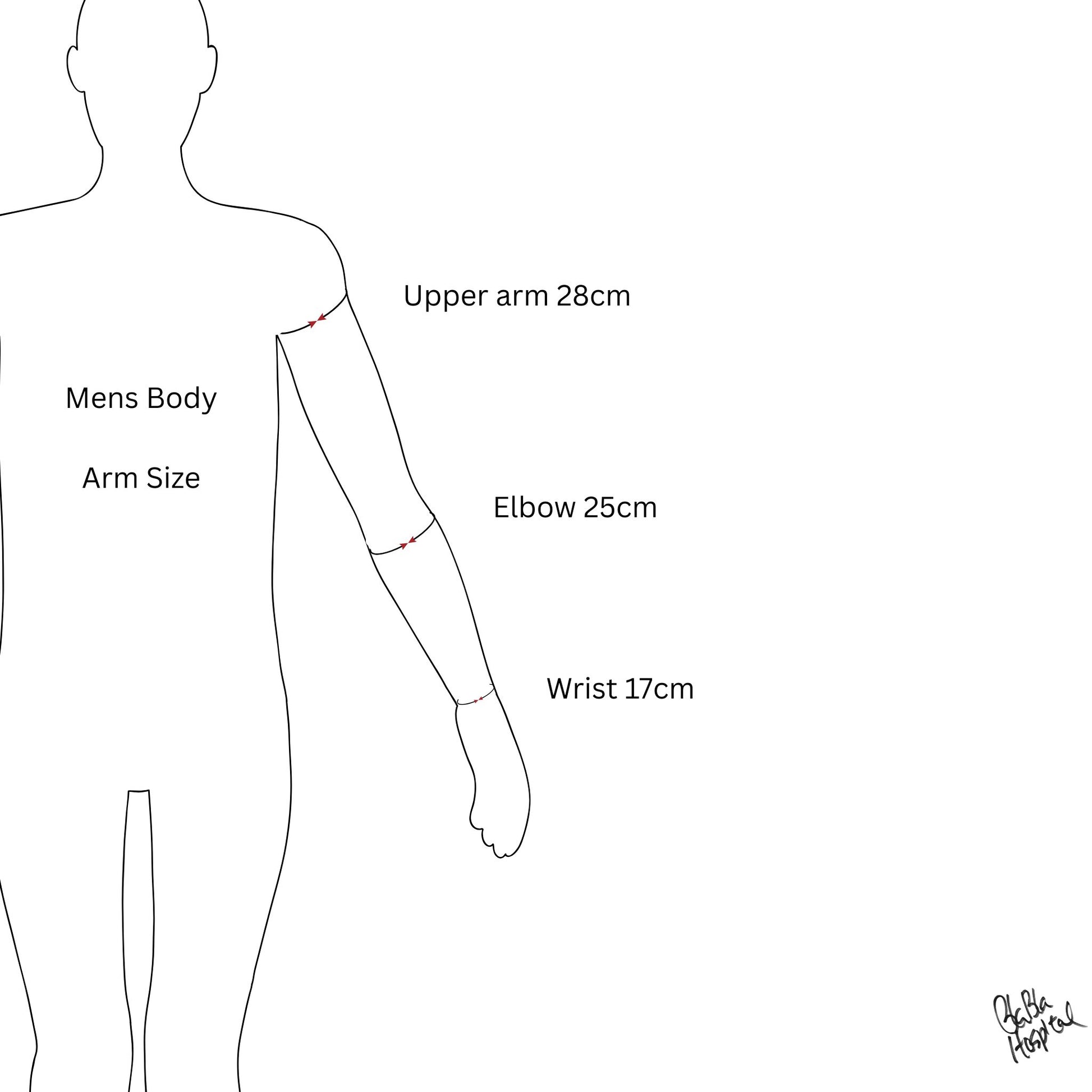 circumference cm - Upper Arm 28/ Elbow 25/ Wrist 17