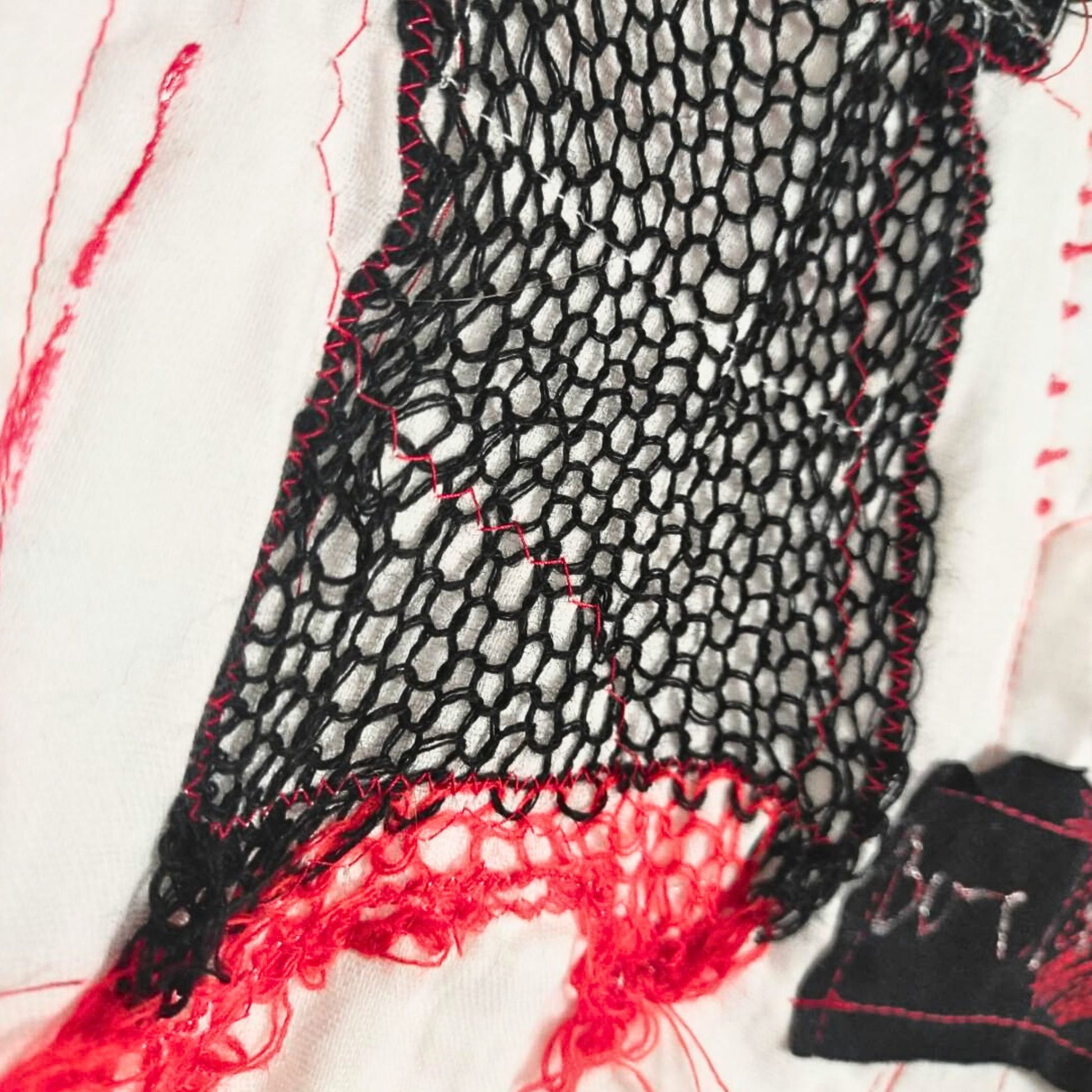 Face No.003 | Fabric Art Red Tartan Design – Black Scarf