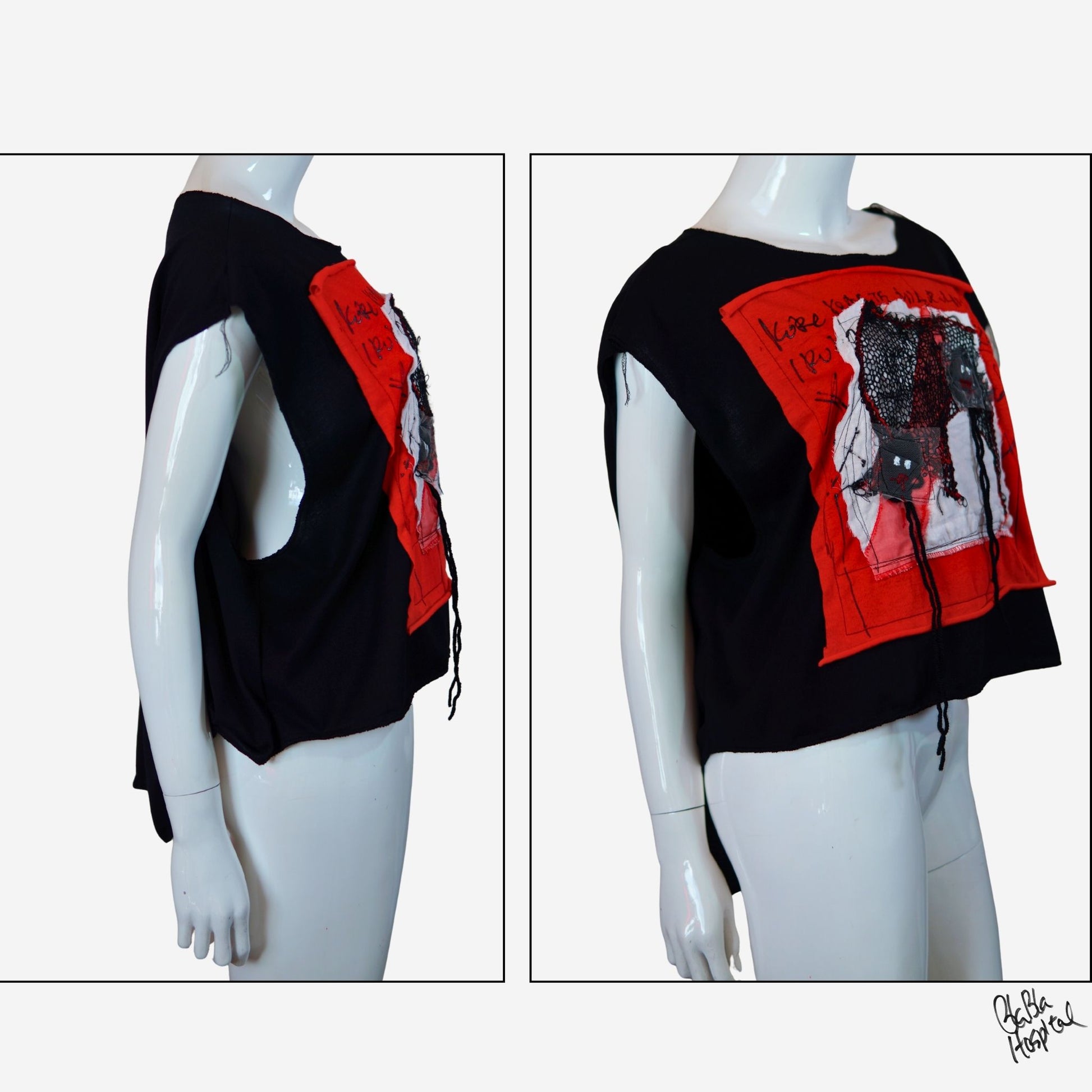 Face No.002 | Romaji writing – Oversized Black Sleeveless Top