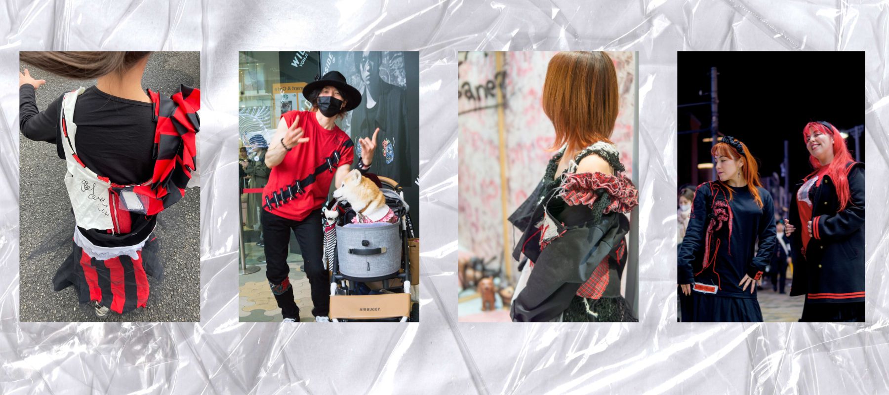 Face No.003 | Fabric Art Red Tartan Design – Black Scarf