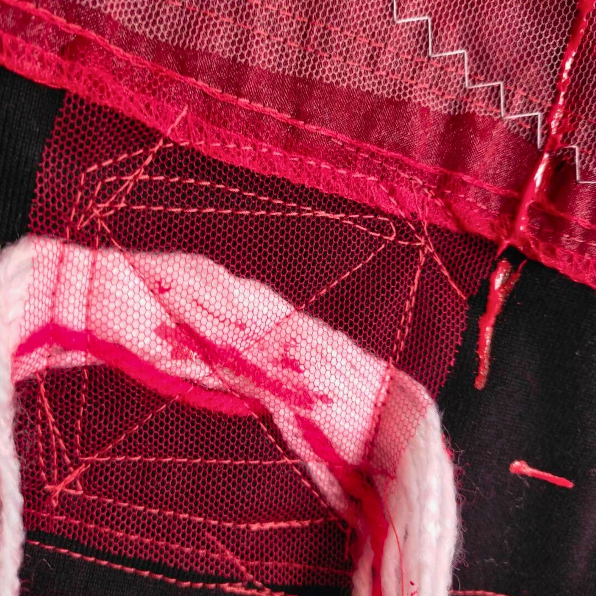 • Black under-stitching on red body